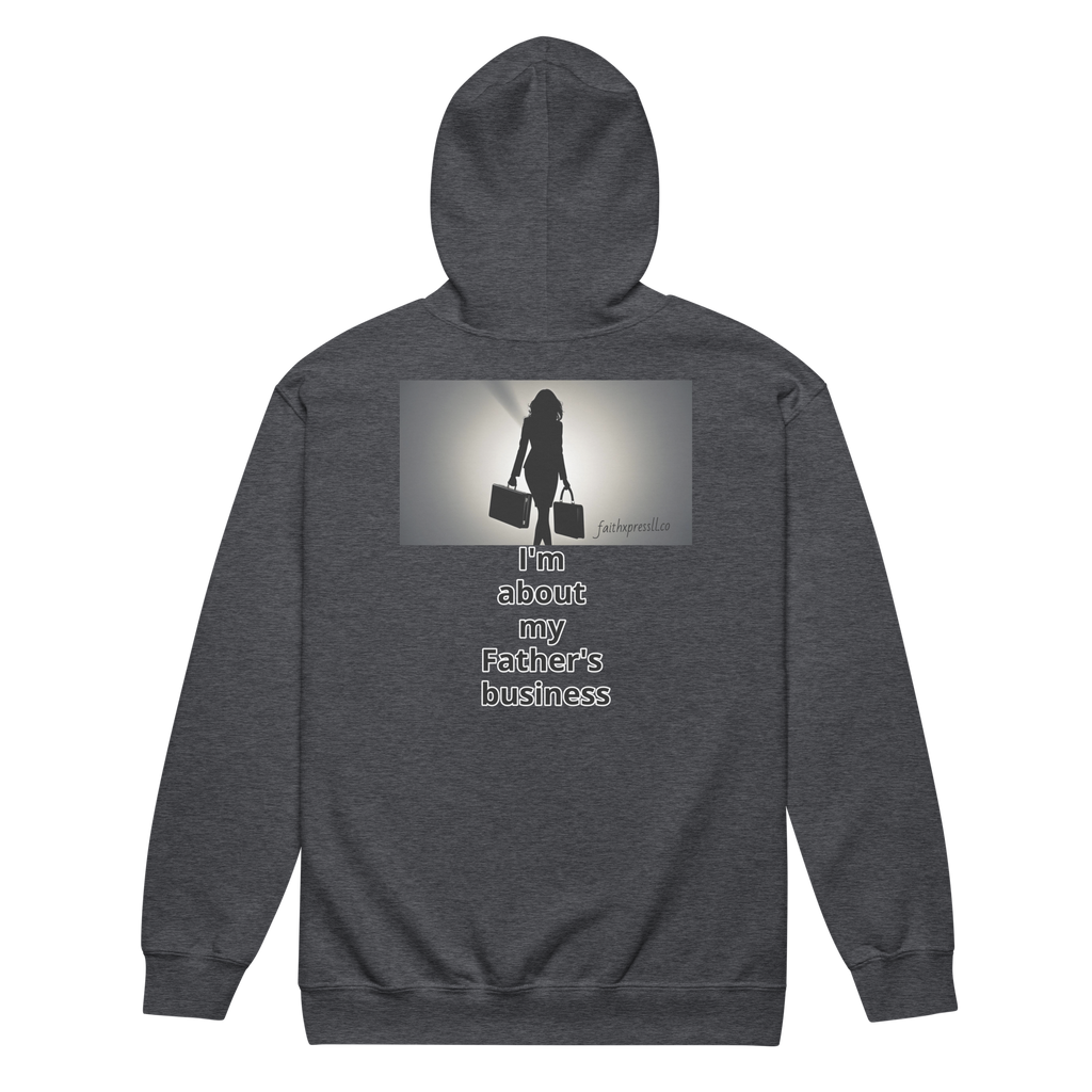 Stay cozy and inspired in our "Kingdom Business" heavy blend zip hoodie, fit for royalty and daughters of the Kingdom of God. Keep warm while spreading the message of faith and empowerment.